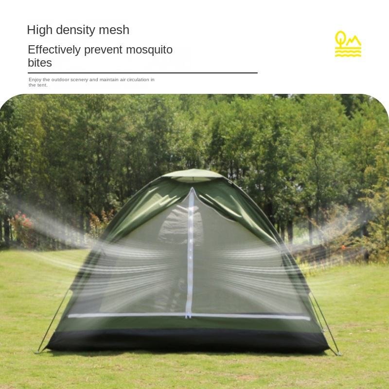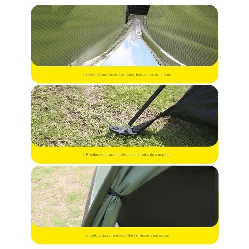 - This camping tent is suitable for 2 people. 2 queen air mattresses or 2 sleeping bags are well fit in the tent, designed to provide you with excellent roomy space.
