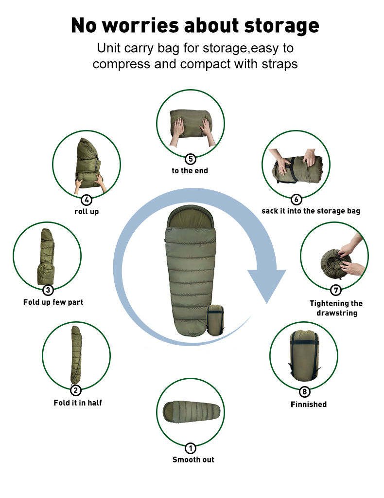 6.COMPRESSIBLE STUFF SACK: Makes it easy to quickly pack up and store sleeping bag